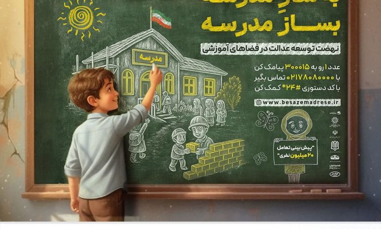 گفتنی است پویش «بساز مدرسه» به همت جامعه خیرین مدرسهساز کشور و سازمان نوسازی مدارس شکل گرفته و بستری است برای آنکه هر ایرانی، از طریق مشارکت نقدی، غیرنقدی، یا حتی سفیر شدن در پروژهها، گامی در ساخت آیندهای روشن برای کودکان این سرزمین بردارد.